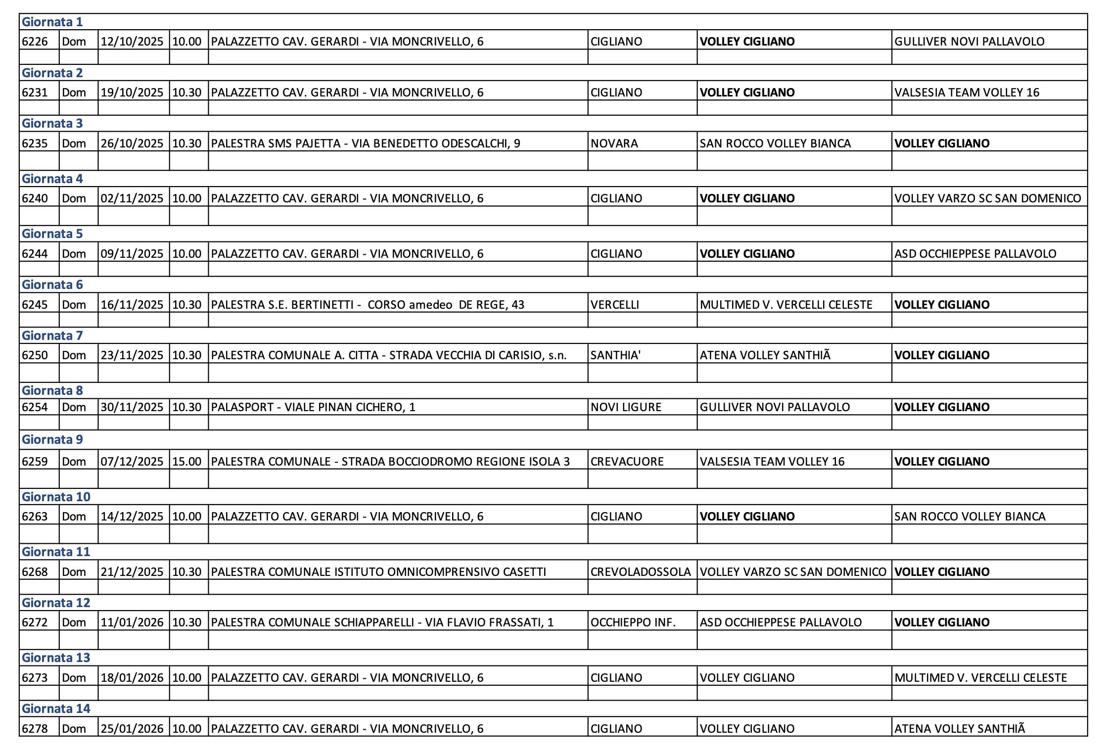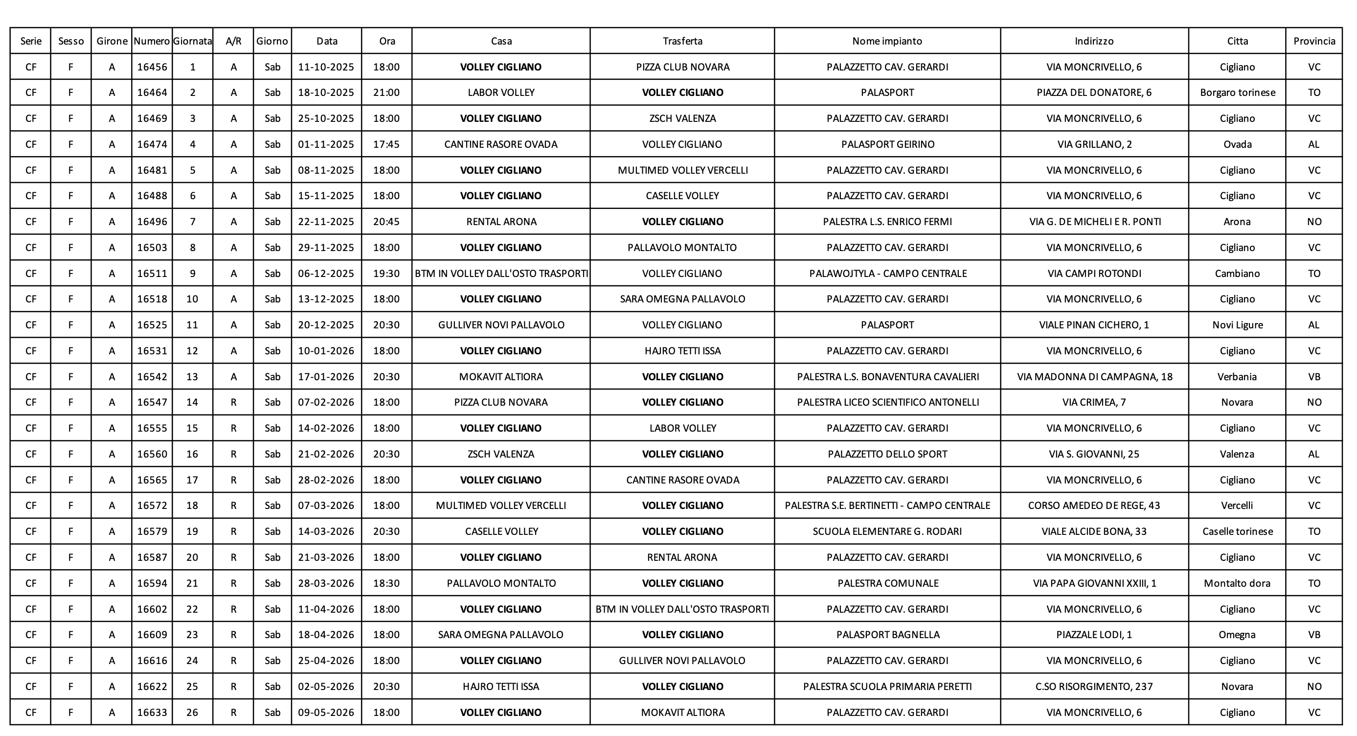 Scopri il calendario completo della stagione 2025/26: tutte le partite, le date e gli orari delle sfide che ci aspettano in campionato.